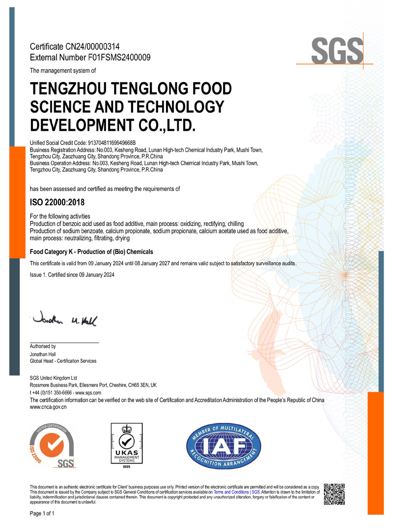 公司專(zhuān)業(yè)生產(chǎn)苯甲酸,苯甲酸鈉,丙酸鈣,丙酸鈉和醋酸鈣等系列產(chǎn)品